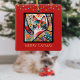 This unique catty Christmas ornament features an artistic rendering of a cat, similar to the style of Picasso, with a colourful cat filled with organic shapes, florals, and colours that bloom in to the background. The gorgeous and stylish teal, red, black, gold, and green provide a festive but artisan look. The text "Merry Catmas" appears below in trendy gold, but you can edit the text, e.g., if you prefer to add your own or your recipient cat's name.