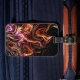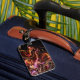This luggage tag has an artsy design on it.