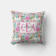 Artsy Elegant Pink Teal Floral Watercolor Monogram Cushion
