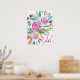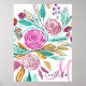 Artsy Elegant Pink Teal Floral Watercolor Monogram Poster