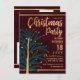 Artsy Gold Burgundy Tree Lights Christmas Party Invitation Postcard