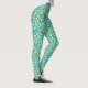 Cute artsy leggings with citrus pattern featuring watercolor lemon slices on a turquoise splatters background.