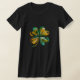 This colourful t-shirt features a vibrant and artistic design of a four-leaf clover, symbolising luck and celebration. The central emblem is a kaleidoscope of green, yellow, and teal swirls, giving the clover a striking and unique appearance. Perfect for St. Patrick's Day festivities, this eye-catching shamrock adds a dash of festive spirit and charm to any outfit. While it shines brightest during the holiday, the whimsical and colourful clover makes it a great choice for anyone who loves to incorporate a touch of fun and luck into their everyday wardrobe. Available in various colours, including the classic black version, this t-shirt is versatile enough to suit different preferences and occasions. Whether you're attending a parade, enjoying a festive gathering, or simply going about your day, this t-shirt will keep you stylish and spirited.