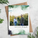 Modern custom printed Christmas photo cards with a simple DIY template for customisation. This artsy design has an abstract paint splatter background in shades of green and blue. Add your family photo, personal greeting, names and the year. Use the design tools to edit the fonts and colours. Reverse side has space to add more photos and text.