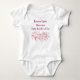 Celebrate the birth or anniversary of a friend's baby girl and her mother's love for her with this cute and elegant bodysuit sporting the text "Mummy's Little Bundle of Joy" in dark pink letters above a whimsical illustration with hearts, flowers, and a bird. Make sure you personalise this bodysuit with the name(s) of the new baby. Note that you can customise the text to read whatever you wish within that space, such as "Sweet Little Girl," for instance.