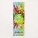 This artsy, abstract painting shades of red, green and blue splattered through out the mat with a decorative green yellow shaded flower with a light green gem in the middle as the centerpiece. Artsy cool vibe with vibrant energy to get you going with your yoga practice. Can be personalised on the bottom with name, logo or text to make it uniquely your own.