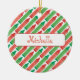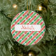 This fun ornament has a background of green and red crayons that read "Happy" and "Holidays" on the labels. The crayon illustration is a repeating pattern of these fun crayons on a white background. A box with scalloped corners appears above for a place to add your name or anything else you like to personalise it.
