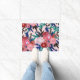Artsy Pink Red Blue Acrylic Painted Flowers Leaves Doormat