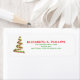 This label features a colourful abstract art swish red, green, and gold Christmas tree. It has a faux gold glitter star topper. The personal information is on the right side of the label. Fill in those text fields under personalise.