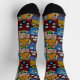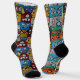 Cool hand drawn street art style with monster face in colourful pattern, blue, red, orange, green and so on.