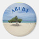 3 inch round magnet with Aruba beach scene.