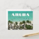 Aruba Bech scene with palm trees, umbrellas, and swimmers in the tropical sea.