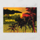 Aruba postcard featuring sunset tropical palms and calm ocean.