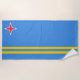 This design features the flag of Aruba, which is an island and a constituent country of the Kingdom of the Netherlands in the mid-south of the Caribbean Sea. Aruba is about 18 miles north of the Venezuelan peninsula of Paraguaná and 50 miles northwest of Curaçao. Together with Bonaire and Curaçao, Aruba forms a group referred to as the ABC islands. The capital of Aruba is Oranjestad, which is also the country's largest city. San Nicolaas is Aruba's second largest city.