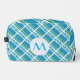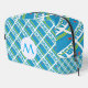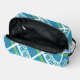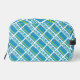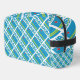A tiled design using the Aruban flag or flag of Aruba shows on this Dopp Kit. A round, fractal, circle of white squiggly squares has a place for an initial so you can personalise with a monogram. Great for travelers. Can make your trip better by helping with your packing needs.