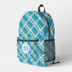 A tiled design using the Aruban flag or flag of Aruba shows on this backpack. A round, fractal, circle of white squiggly squares has a place for an initial so you can personalise with a monogram. Great for back to school.