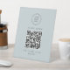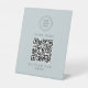 This business QR Code menu pedestal sign features a sage green background and modern sans serif font. Add your own logo and business menu website to create a custom piece for your business.