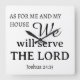 "But as for me and my house, we will serve the Lord" Joshua 24:15 Bible scripture quote to hang in your home. Makes a great housewarming gift or wedding gift for Christian families: with simple black typography, and modern lettering in template form. You can change the font/colours/text.