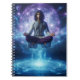 This mesmerising artwork portrays a figure in a state of deep meditation, levitating above an intricate, glowing mandala on the ground. Dressed in traditional attire, the subject sits cross-legged with an expression of serene focus, while luminous, swirling energies envelop them, forming intricate patterns and cosmic symbols. The background features mystical designs, enhancing the otherworldly atmosphere, and a radiant aura encircles the figure, symbolising enlightenment and transcendence.