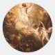 Vintage painting depicting Christ ascending into heaven. He is watched by his followers and family and escorted by angels. Painting c 1710.