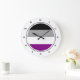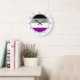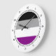 Round wall clocks with asexuality pride flag with black, grey, white and purple striped pattern with design