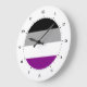 Round wall clocks with asexuality pride flag with black, grey, white and purple striped pattern with design