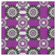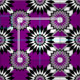 Fabric with a seamless modern geometric flower pattern in the colours of the asexuality pride flag; a black, grey, white, and magenta/purple ace pride design, mirrored pattern on a purple background