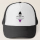 Trucker Hat with fleur-de-lis (fleur-de-lys or lily flower) symbol with rainbow stripes of black, grey, white and purple from asexuality flag; ace pride design