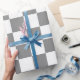 Ash Grey White Chequered Check Pattern Wrapping Paper