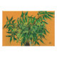 Glossy poster features bold floral painting in impressionism style, ash-tree branch in the glass vase. Summer greenery, emerald green leaves on saturated yellow background. Life drawing, soft pastels on paper, 2016.