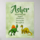 Asher Name Poster on green watercolor background, with dinosaurs and customisable text. The adjectives start with each letter of the chosen name. You can customise the adjectives for this name or choose another name and corresponding adjectives. Or you can contact me to customise a poster with your name of choice. NOTE: when customising, the top name is written twice (once in green and once with a lighter "shadow") to make it stand out.