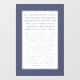 Asher Yatzar Blessing, which is traditionally pronounced after using the bathroom. Hebrew, transliteration, and translation into English, all in the dark, dusty blue colour.