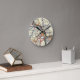 The clock did not take as long to arrive as I thought it might and was extremely well packaged. I didn't do the measurements so I didn't realize it is a little smaller than the average clock but that does not matter (just make sure you check if that's important to you).It is really nifty! It seems very solid and well made not flimsy at all. It has been going well and has kept good time in its few weeks on my wall. Nice product. Gets noticed too! Nicer in real life than the picture but true to the picture