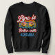 I wanted to give this gift to my friend that loves animals of all kind. She and her husband are retired and what a perfect sweatshirt to wear in comfort any day of the week. It has a cute picture and now because I was able to add my own touch, it has hearts! The colors are bright and the design clear.