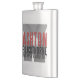 The product is a good size and came exactly as it was pictured.  The lid is not attached to the flask, which could be dangerous on drunken nights... The print came out surprisingly well and looks very sharp.  Would definitely recommend.