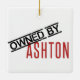 This is an amazing ornament. It's light weight and thin, but still sturdy. One side is the Ashton design and the other is the Owned by Ashton design. You do have to attach the string yourself. Awesome ornament for your tree. This product turned out great. The ornament is glossy and beautiful. I was amazed when I saw it. The design is perfect and can be read easily.