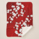Asia Floral White Cherry Blossom Red Sherpa Blanket