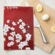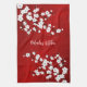 Asia Floral White Red Cherry Blossom Add Name Tea Towel