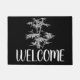 A Zen style grey bamboo theme welcome mat featuring Bamboo plant illustration against a black customisable coloured background with welcome sign. A homely, Asian art good chi welcome door mat perfect for your house.