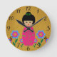 Wall Clock, 25.4 cm Round Black Wooden Frame