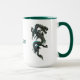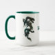 Cool coffee mug, with graphics of a metallic looking Chinese style dragon, with teal green accents. Personalise the green text, on the front of the mug for yourself or as a great gift idea to any fantasy lover.