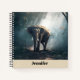 A personalised notebook with a photograph of an Asian elephant with rounded ears standing in a forest clearing looking towards the viewer with sunlight streaming down through the canopy of trees.