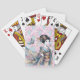 A Pastel Asian Geisha Poker Classic Playing Card Deck, With Pink Cherry Blossoms And Lantern Background