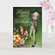 Asian Girl Beautiful Flowers Happy Birthday Card 5