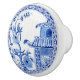 Asian Influence Blue White Floral Bird and Pagoda Ceramic Knob