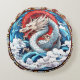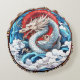 Asian Mythical Dragon in Red and Blue Round Cushion
