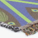 A quality printed throw has its advantages. This is a much finer weave throw than its loopier cousins, and though lighter, it is worth the investment for custom room accessorizing. The back is much prettier than the typical brown, and the fringe on the long sides very vivid, the selvage nicely done. Before photographing, I washed the throw in cold water, delicate, with a thicker woven throw the same size. On tumble dry low, this throw was dry in half the time as the other. This is a very practical quality if you use throws for furniture covers or to wrap up in frequently. The sleekness of the fabric makes it a great layer for accenting or protecting without the feeling of sitting on too much stuff. Perfect for napping or when you feel a light chill coming on. The color printing is beautiful and on this fabric, matched the design and color of my Photoshop image. This is an advantage for blending room fabrics and colors. The fringe on the short sides prints the colors from the design image and therefore varies from the side fringe. I streaked a white fractal line through the plaid pattern to give the illusion of weaving. This printed as crisp as an illusory thread, and put some white in the short side fringe, showing another advantage of print vs loomed- for artistic purposes, line lines, detail, and color integrity can be planned and preserved. My loomed throws have color limitations and more of a needlepoint texture. Print throws reproduce an exact image. The throw felt a little stiff straight out of the package, but this went away in the first delicate wash. Of course I searched the wash water for ink or bleeding and there was none.