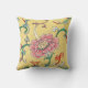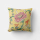 Asian Pink Peony Garden on Pastel Butter Yellow Cushion