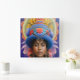 An image of an Asian princess wearing a big blue floral hat. This is an image created by AI with floral theme design.