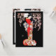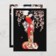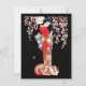 Beautiful image of Asian woman with fan, in traditional dress. Cherry blossoms dangling from above with the moonlit sky as a backdrop. Dark night black background, She is wearing a red flowered dress.